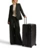 This trunk boasts a modern silhouette with fluid-looking contours. Made with a recycled polycarbonate shell, it’s innovatively designed like a portable closet, ideal for longer trips or when two are traveling together.