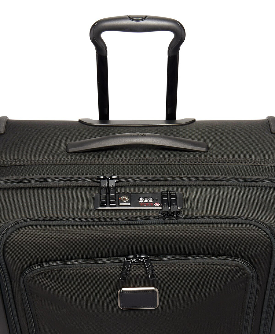 This extra roomy suitcase is a great choice for extended travel or shared packing. Main compartment features TUMI’s easy-to-use Lever Lock™ Expansion System that allows for up to 2″ (5 cm) of additional space. A removable garment sleeve accommodates one suit, and handy interior and exterior pockets keep essentials in order and easy to reach.
