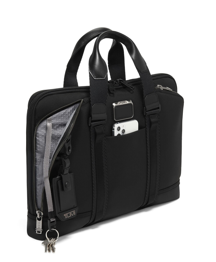 Discover all the classics of a great brief in a compact silhouette. Slim and well organized, the brief offers dedicated laptop and tablet compartments, numerous interior and exterior pockets and a removable shoulder strap. The addition of daisy chains makes it compatible with TUMI+ accessories to further enhance its functionality. Sold separately.