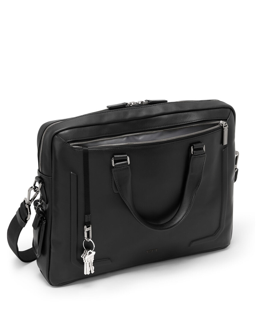 Limitless functionality in a streamlined silhouette. Designed with clean lines and a minimalist aesthetic, this brief is designed to organize work essentials and holds up to a 16” laptop.