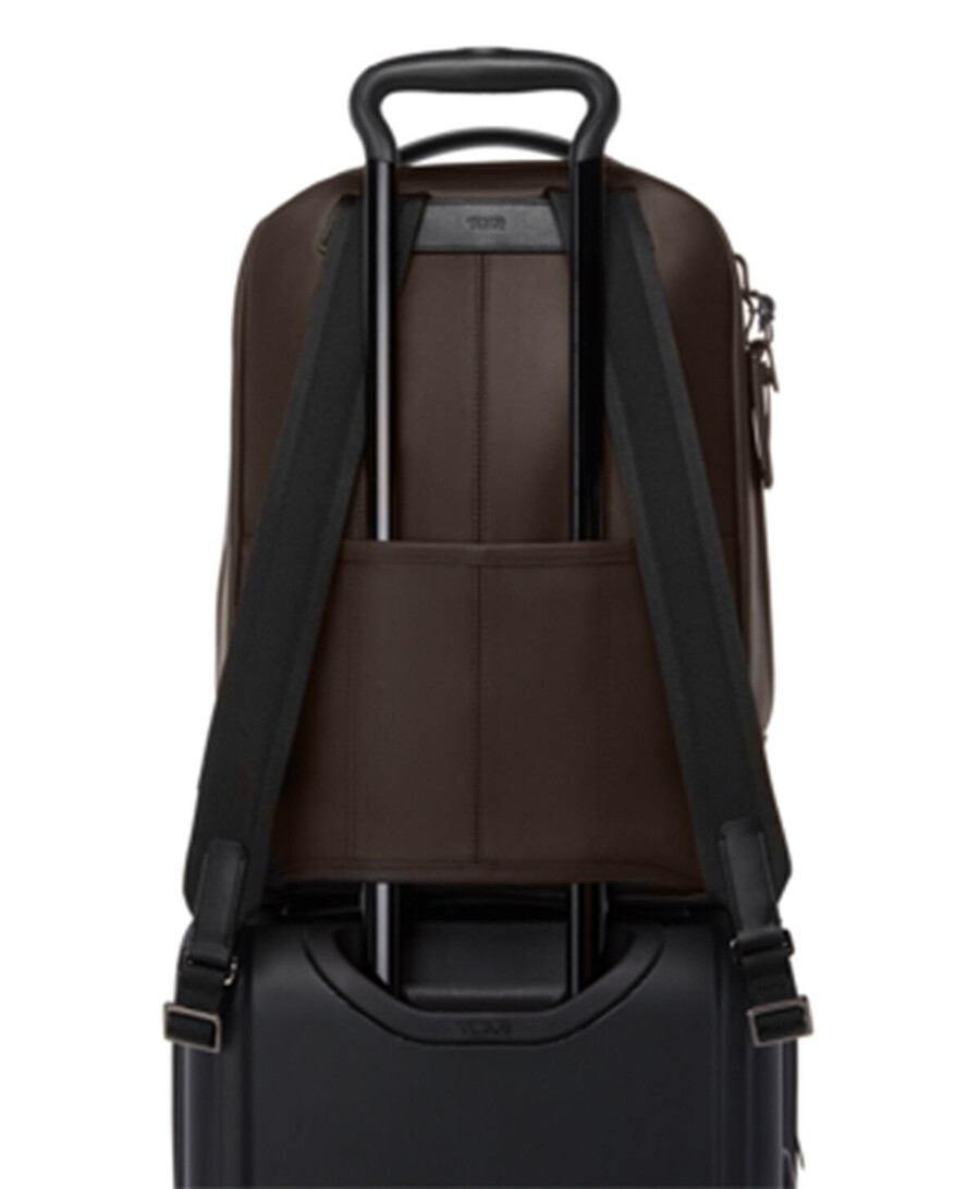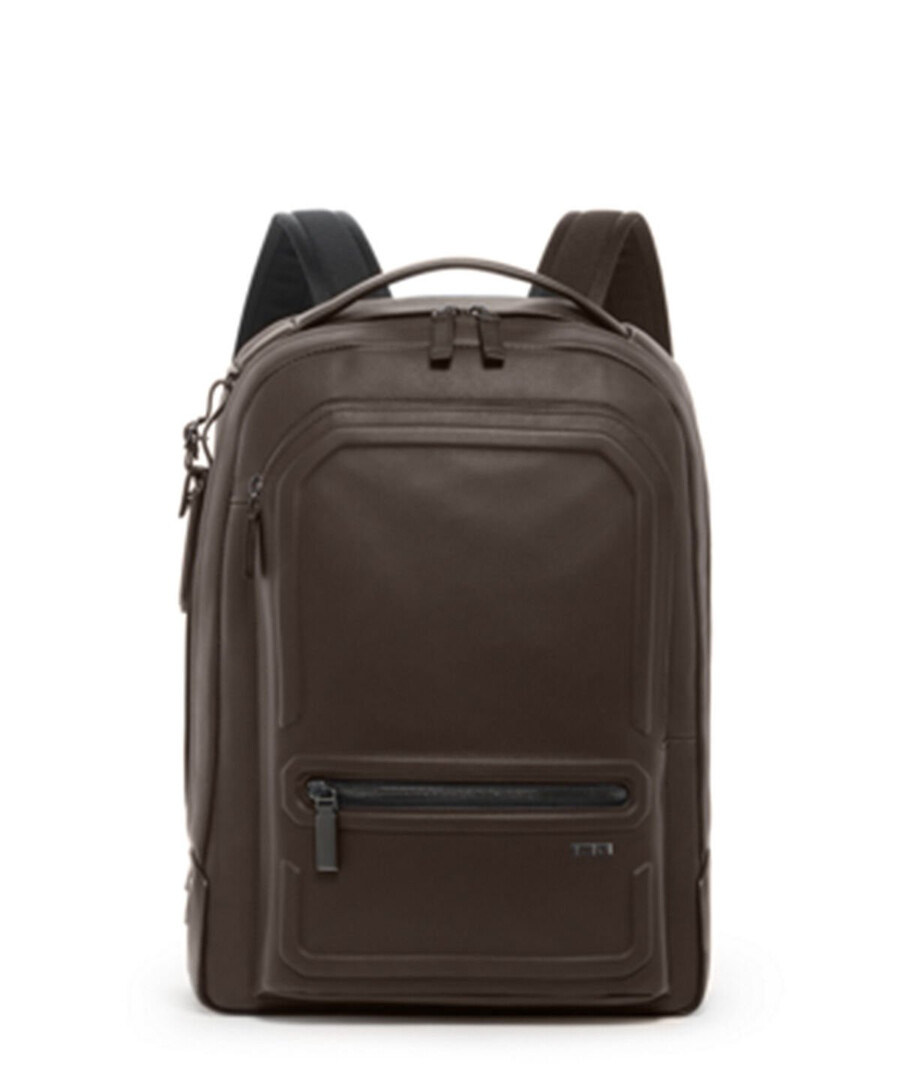 This refined backpack is suitable for work or the weekends. Toting an array of pockets inside and out, it has space for your laptop, documents, phone and more. Embossed leather accents frame the sleek silhouette.