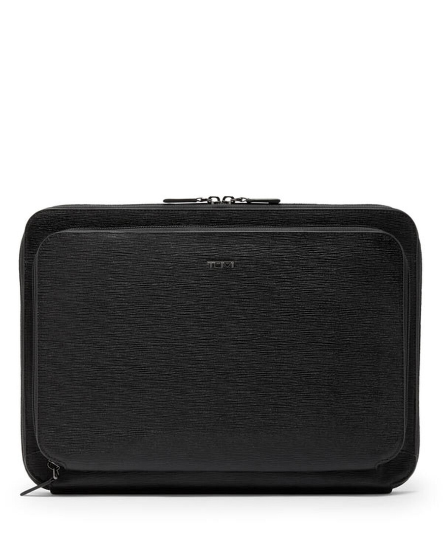 Thoughtfully designed to carry a 14” laptop with functional pockets for additional storage, this business portfolio meets laptop case is an elegant way to carry documents and tech on-the-go.