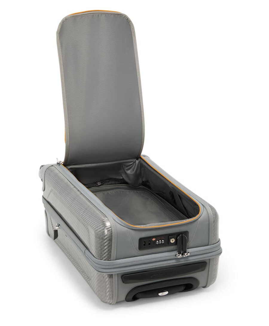 The engineering science behind McLaren and the product innovation of TUMI have come together for a seamless integration of lifestyle, fashion and technology. Echoing automotive design, this carry-on is crafted with a mix of exceptionally durable materials including Tegris®, an aero-inspired molded front panel, and CX6®carbon fiber accents throughout. The influence continues with compression straps reminiscent of McLaren’s 6-point harness, while Papaya highlights bring a signature touch. Complete with a USB port, this expandable case delivers superior functionality and versatility without sacrificing design.