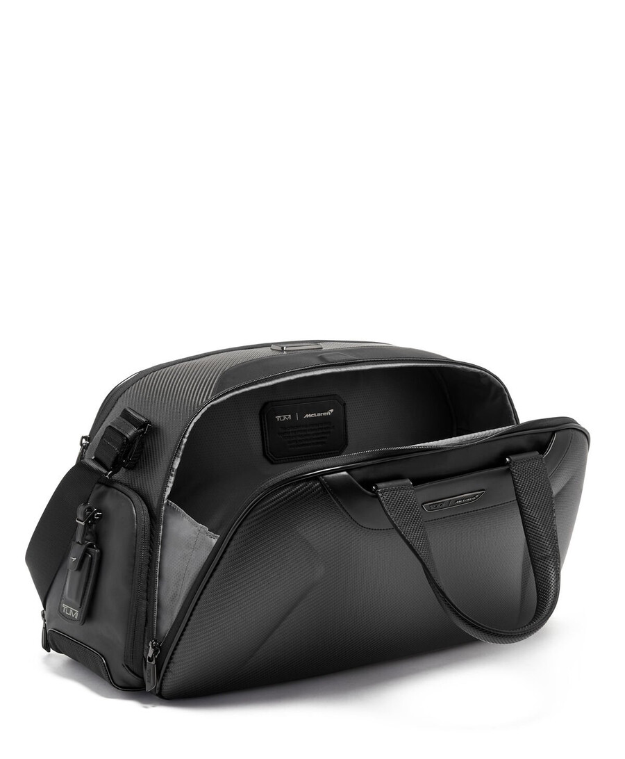 Echoing automotive design, this duffel features CX6 carbon fiber and signature McLaren Papaya accents. The molded design gives it structure and durability so you’re well prepared for your next excursion.