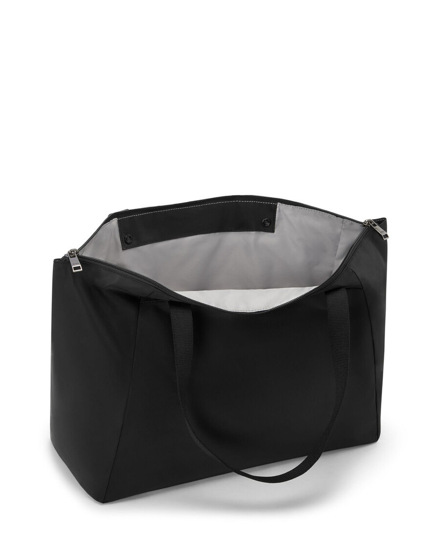 Now in a medium size, this lightweight tote folds flat to be completely packable. Keep it in its small zip pouch that can easily be stored inside larger bags for those moments when you need it “just in case.”
