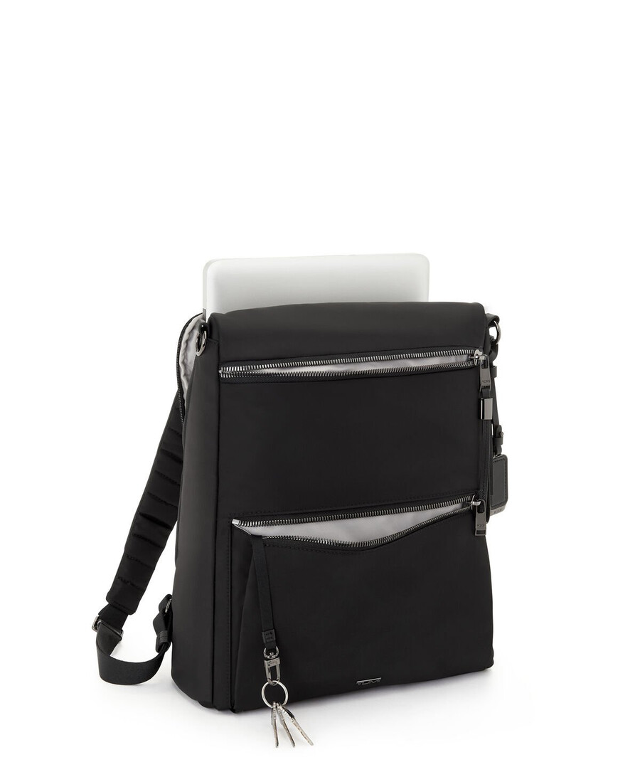 • Padded adjustable backpack straps with D-ring and loop compatible with select TUMI+ accessories*