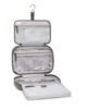 Don’t leave home without this travel-ready style. Three transparent interior compartments and a detachable pouch create optimal organization. Lay it flat or hang from a fixture when open.